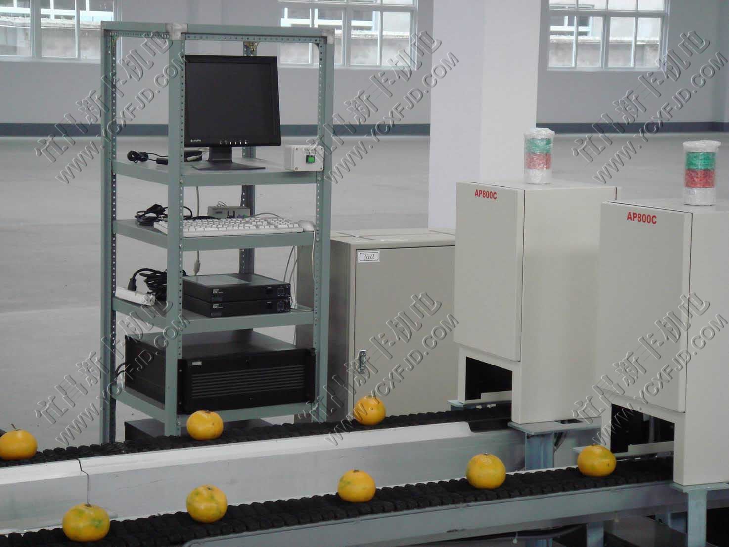光電分選機引進日本技術,由光學成像再處理分選,它可根據用戶要求按果的大小、形狀、色澤、果面缺陷和損傷的外觀品質指標等進行分選,必要時還可以加裝糖度分選,本分選線可用于蘋果、桃子、西紅柿、土豆、黃瓜等所有可上線的蔬果,單線每小時可分選36000個。